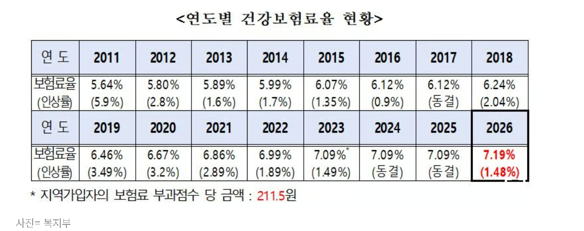 2026년 직장가입자 건강보험료율은